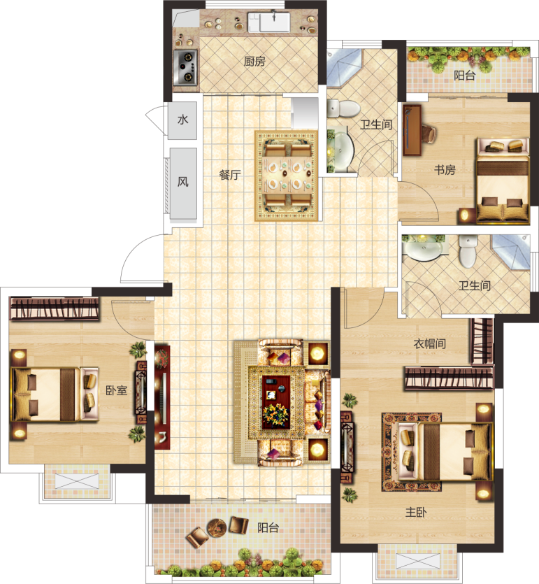 宽奢三居,更大空间、更多自由 星级主卧,独立卫生间与衣帽间 阳台书房,独享宽阔阳台,独占一方美景; 朝南次卧,用阳光唤醒家人